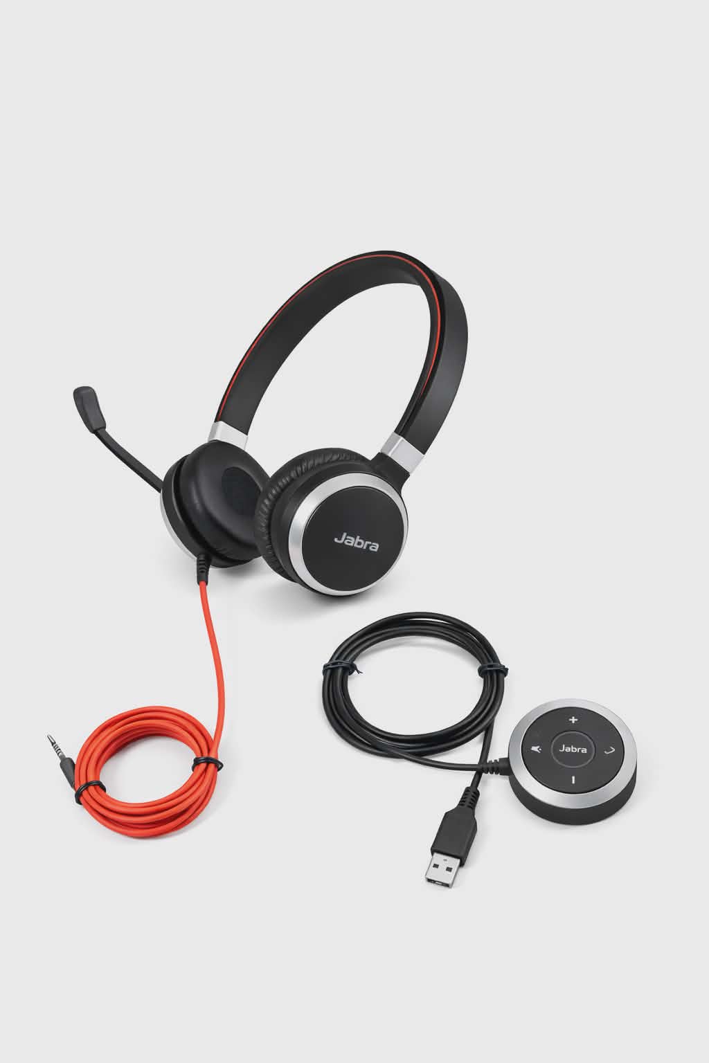 - Box contents: Jabra Evolve 40 UC stereo on-ear headset, USB cable with call control, 3.5 mm jack, neoprene case - weight: 171 g - colour: black